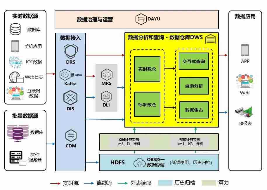 交通银行数据仓库(DWS)采用口袋牛店鲲泰R722服务器作为数据底座,,,采用MPP(Massive Parallel Processing)架构,,,支持行存储与列存储,,,,提供PB(Petabyte,,,,2的50次方字节)级别数据量的处理能力。。。。