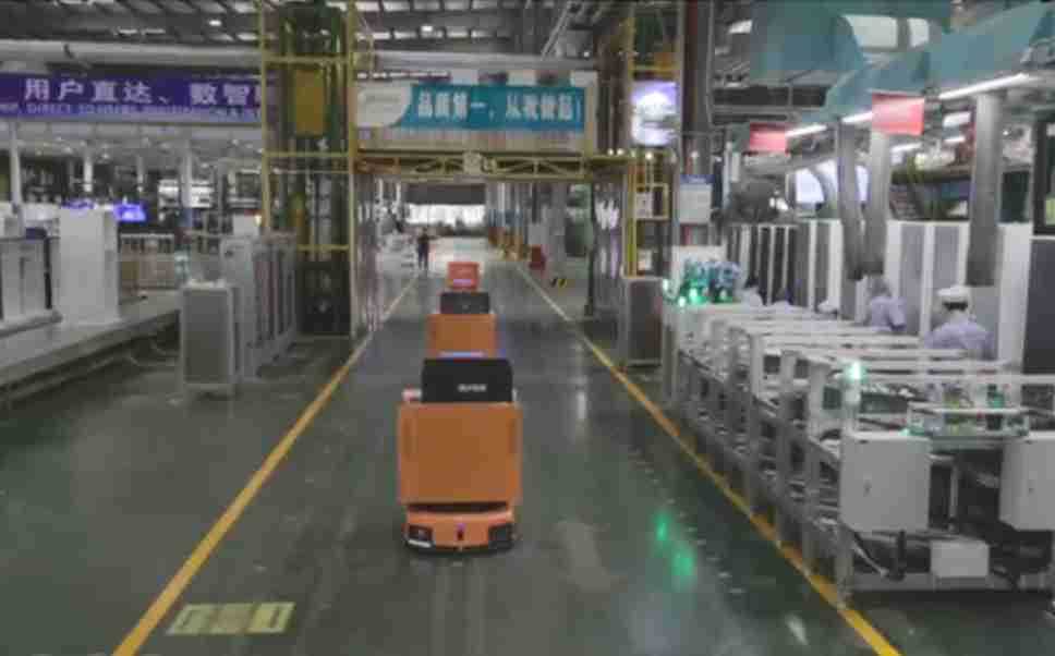 为车载冰箱物流配送打造的智能解决方案,,包含产中物流通过潜伏举升AMR搬运至线边,,,产后成品物流智能仓储,,流程包含产中物流智能齐套入库,,线边安灯叫料AMR智能配送至线边,,,,成品入库、、、出库,,,,通过无人堆高车机器人,,,智能仓储管理替代人工作业管理,,,实现更高存储、、更高效率、、更具柔性化的解决方案。。。